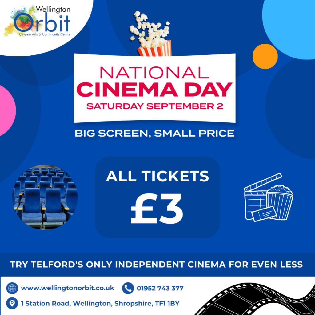 Circle Saturday 2nd September on your calendar and make your way to Wellington Orbit. Join us as we unite with cinemas across the UK to celebrate National Cinema Day. For more details, including showtimes and tickets, visit https://wellingtonorbit.busy-lichterman.64-225-55-71.plesk.page/.