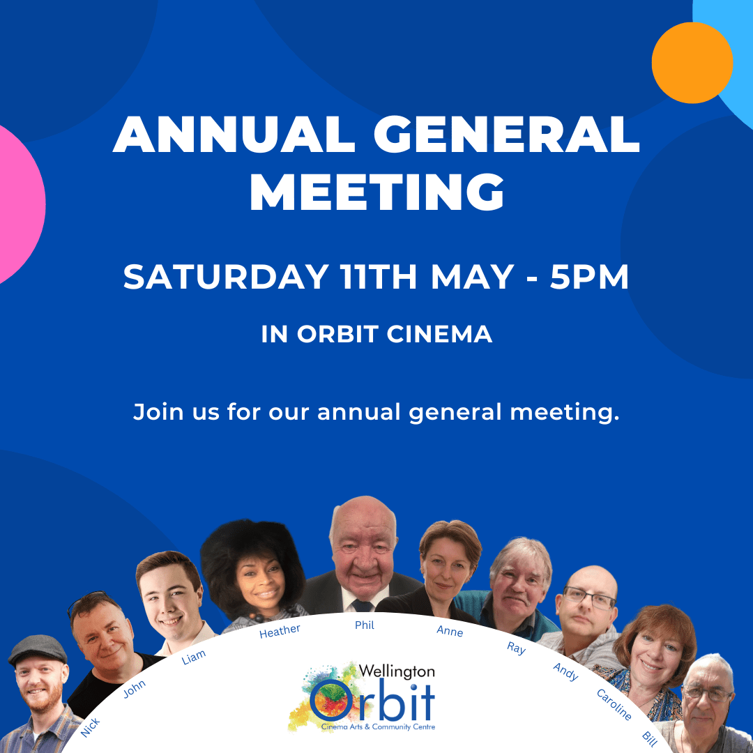We are delighted to inform you that our Annual General Meeting will take place on Saturday 11th May at 5pm in our 63 seat cinema. The